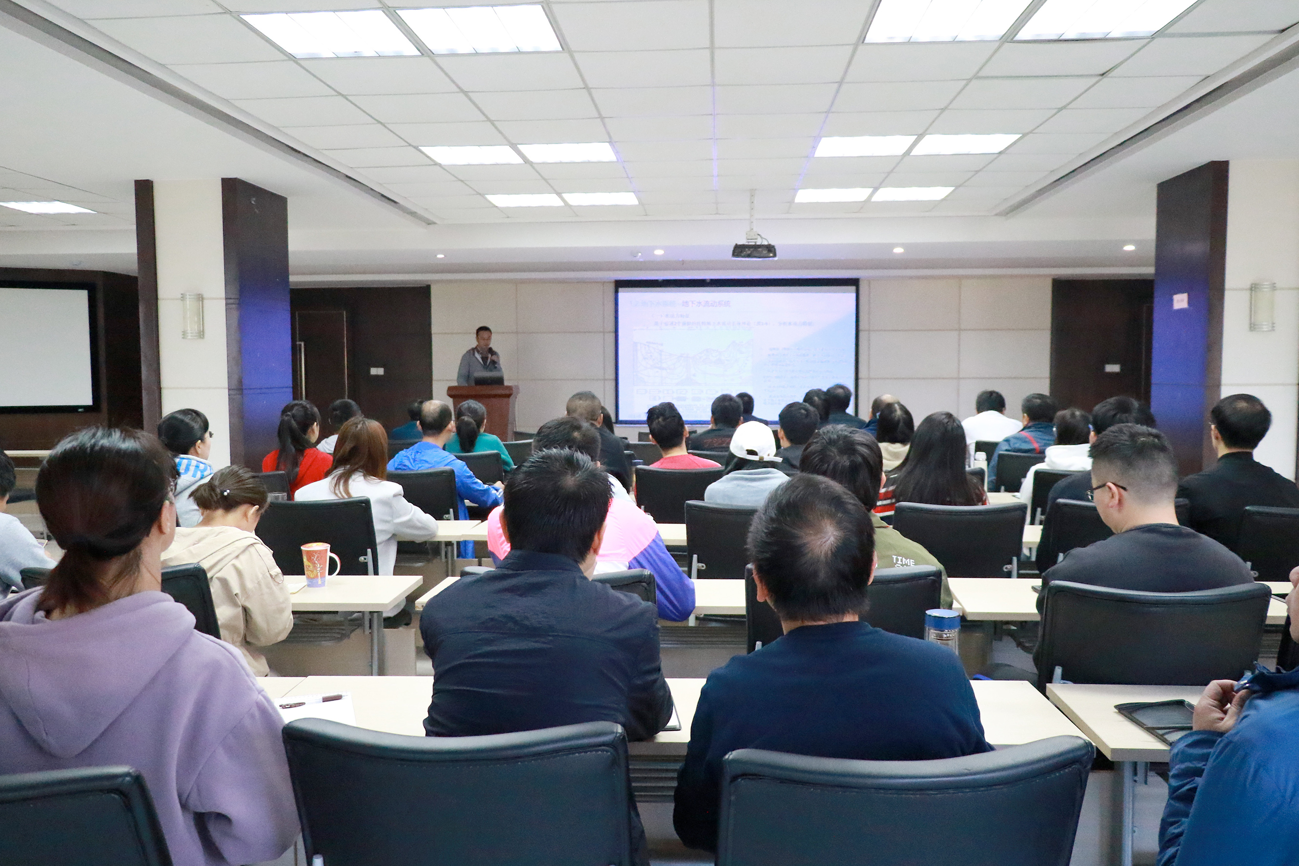 随着国家《地下水污染模拟预测评估工作指南》的发布,预测模型已经成为地下水污染预测和开展地下水修复、风险管控技术可行性分析时的基本工具,为让员工掌握地下水污染与水质模拟的理论和工作方法,提升技术人员业务水平,11月8日,中冶长天国际工程有限责任公司高级工程师李国山莅临恒凯环保进行学术交流,并开展了《地下水污染模拟基础知识》主题培训活动。环境工程设计院、环保技术研究院、总工办以及其他部门等70余人参加了培训。
